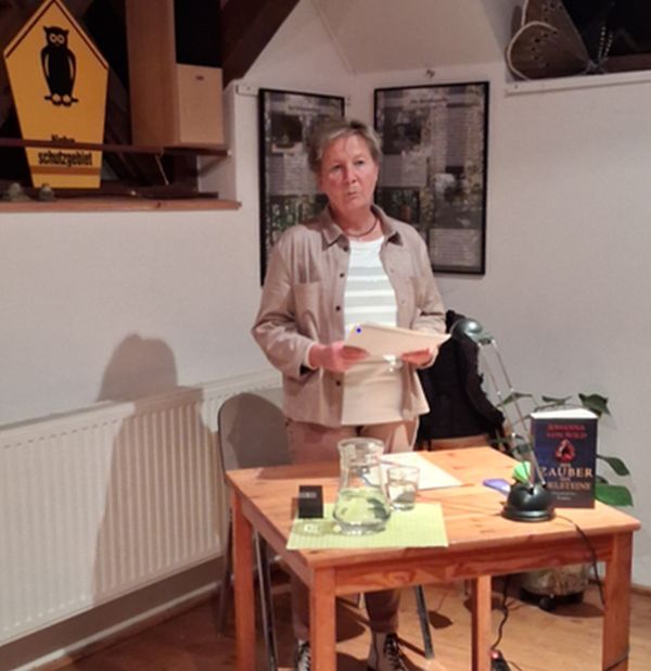 Sie hat eindrucksvoll Ausschnitte daraus gelesen – vielmehr zelebriert – so dass schon in der Pause der Sturm auf den Büchertisch einsetzte. Die Autorin hat sehr geschickt Interesse geweckt, Spannung aufgebaut, herzergreifende Schicksalsschläge angedeutet und Turbulenzen, die die Helden zu bewältigen haben. Als die Spannung im Kaminzimmer spürbar knisterte, beendete Johanna von Wild ihre Lesung.